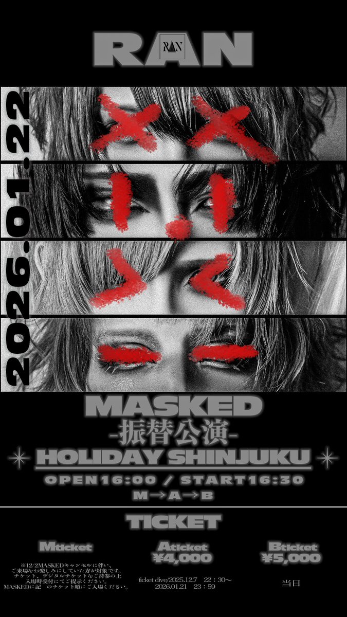 ※12/2MASKEDキャンセルに伴い、該当チケットをお持ち方が対象です。